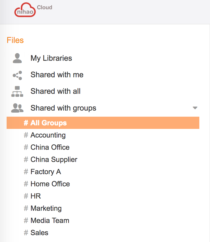 In addition to categorizing files using folders in “Library”, NiHao Cloud’s “Group” function also offers you the chance to categorize user groups.
